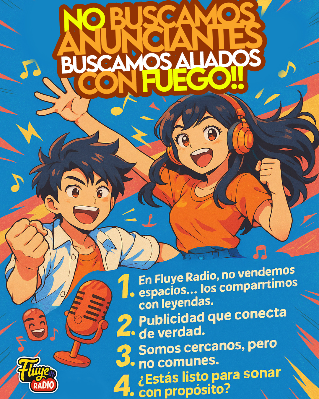 FluyeStudio es la agencia interna de FluyeRadio, creada para potenciar marcas, artistas y proyectos con propósito real. Aquí no vendemos espacios: creamos ecos que resuenan con alma y autenticidad.
